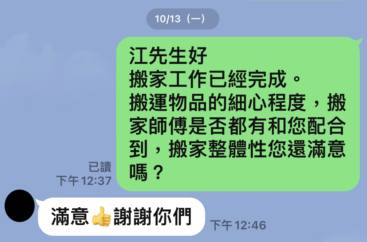 - 客戶評價:非常滿意,下次搬遷再請協助